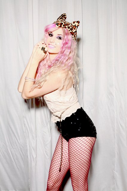Audrey Kitching of Audrey Kitching Couture Wearing: We Love Colors Maroon Wide Mesh FishnetsI just got the photos from the BAD KITTY launch party at the W Hotel a couple nights ago! We arrived in leopard style and sat by the roof top pool listening to music that was cool three years ago.