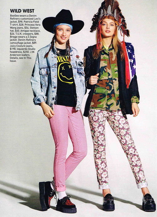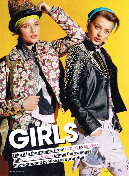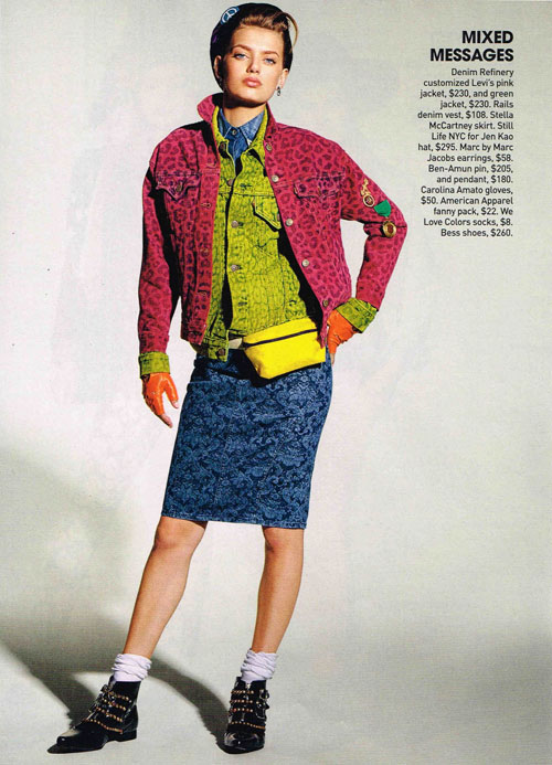 In this issue they are talking about the new denim which is... printed denim! All of these wild prints go very well with your favorite We Love Colors socks. With so many colors to choose from you are bound to find one that is suitable for your denim look. Teen Vogue paired a solid color pair of WLC socks with a printed denim pant and a denim skirt. How will you pair your printed denim?