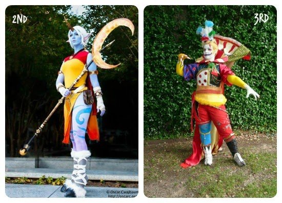 2nd Place – Michelle is Soraka from League of Legends. Michelle in her own words explains how she made this costume: “two pair of Microfiber Nylon/Lycra tightsin Sky Blue. I am wearing one pair on my legs, and one on my arms. To make the sleeves I cut a triangle out of the center crotch seam. That then became the neckline and the legs became sleeves I then sewed finger holes in the feet to make them gloves. After that dyed the tights in a ombre effect with Purple Rit Dye. For my legs, I painted the swirls on with fabric paint. I REALLY hate body paint so I thought this would be the best way to make a even looking body paint, and just used matching body paint to get my face. For my wig I’m using a Arda Inigo in Pure White (F18) and 3 packs of Long White wig wefts in Pure White from Arda as well..”