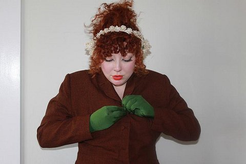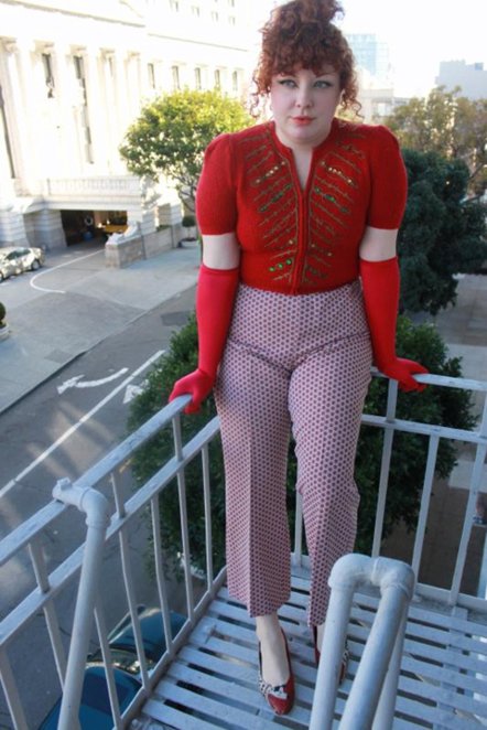 Nicole of Fashion Forestry Wearing We Love Colors Shoulder Gloves in red