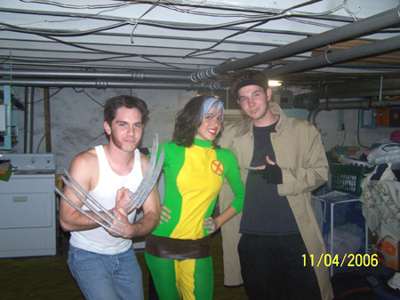 I was the old version of Rogue from X-men. And these are my buddies dressed as Wolverine and Gambit.