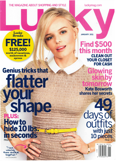 What works for you? Lucky Magazine featured We Love Colors solid color microfiber tights in grey while demonstrating "beauty and fashion solutions for every body" in their January 2010 issue! In their article Lucky How-To, the brilliant Lucky editors recommend picking slimming grey tights and a high waisted skirt. We recommend our grey tights for every body!