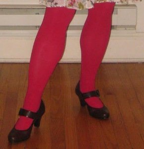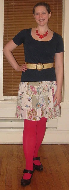 Julia E. of Polka Dot Biker Shorts decided to take a bold and colorful step outside of her comfort zone and pair her Red We Love Colors Microfiber Tights with some florals and a bright necklace. The look was a definite stand out for the coffee shop that day!