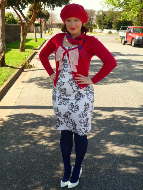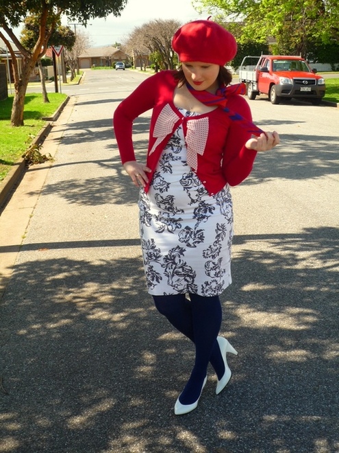 Natalie of A Hat & White Gloves Wearing: We Love Colors Navy Microfiber TightsThis outfit was a bit of a hit! I got a comment on the bus on the way to town, a comment from a lady in David Jones, and a comment on the bus on the way home. It confirms that my current obsession with red and blue is worthwhile. It was too bad that my excursion was only to the library to study, and not out to do something fun!