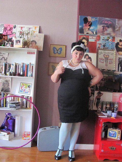 Jessica of Tangled Up in Lace Wearing: We Love Colors Aqua Plus Sized Nylon/Lycra TightsI don't care if its a trillion degrees, I'm wearing tights and playing make believe that its Fall