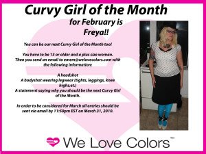 Freya is a dancer and a yoga teacher. She loves colors, her curves and her tights which is why she has been chosen to be the Curvy Girl of the Month. Congratulations Freya!!!