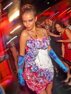 The Fashion Industry Insiders "Blend" event took place a couple weekends ago on Wednesday, January 20 at one of the coolest restaurants on the Brickell, Delores but you can call me Lolita. In case you missed it, you can check out some pictures below of the main attraction at the event - the sneak peak of designer Julia Veli's new line, Jenny Vu, that uses all recycled materials to create its pieces. We Love Colors was so happy to be a part of the show and contribute to such beautiful, eco-friendly looks with our Solid Color Nylon Gloves, Splash Color Shoulder Gloves and Solid Color Thigh Highs.