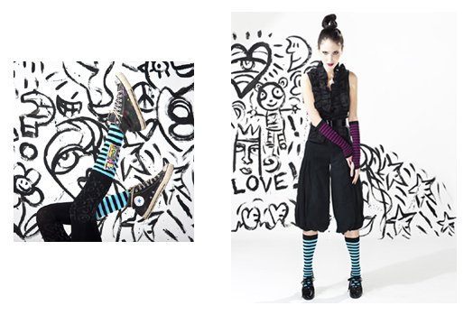 Inspired by Love featuring Spill Art features footless tights, footed tights, socks, arm warmers, and more! We also offer plus size and children's sizes.