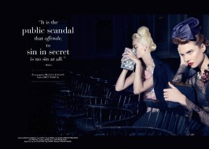Following this intriguing quote you will see We Love Colors sheer knee highs paired with ladylike dresses, coats, and skirts in this month's Glass Magazine. We love how the delicate baby blue sheer knee highs contrast against the dark, heavy skirts and dresses.