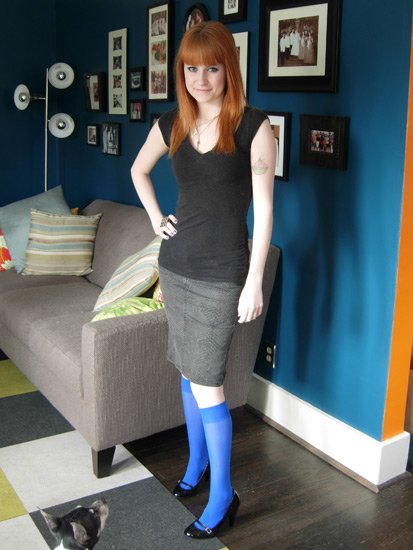 Sarah of Silly Grrl celebrated the perfect weather in Michigan yesterday of melted snow and a warm breeze by wearing her We Love Colors Royal Solid Color Knee Highs.