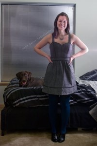 "I think it definitely shows how opaque your tights are! They felt like the perfect pop of color with an otherwise neutral outfit. Couldn't resist including my boyfriend's puppy (Arwen) in the shot."