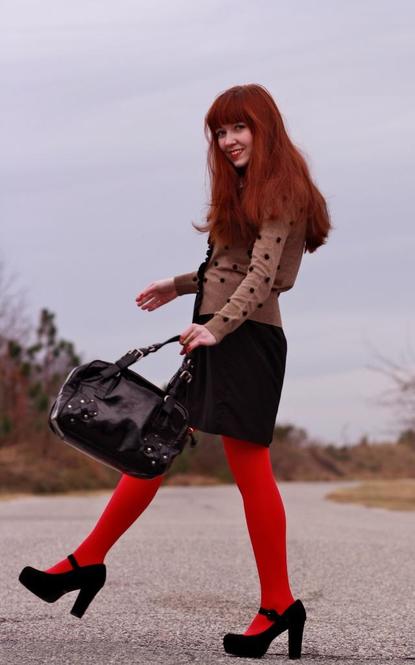Rebecca of The Clothes Horse Wearing: We Love Colors Microfiber Tights in scarlet red