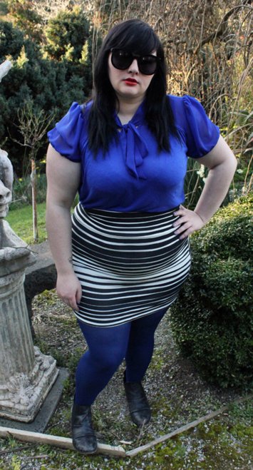 Wearing We Love Colors Plus Size Nylon/Lycra Tights Style# 1008 in Navy Blue