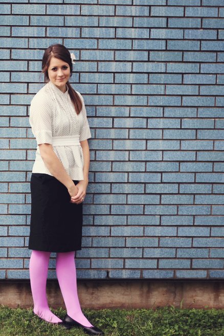 Kate from See Kate Sew wearing We Love Colors Nylon Lycra Microfiber Solid Color Tights (Style #1053) in Orchid Pink!