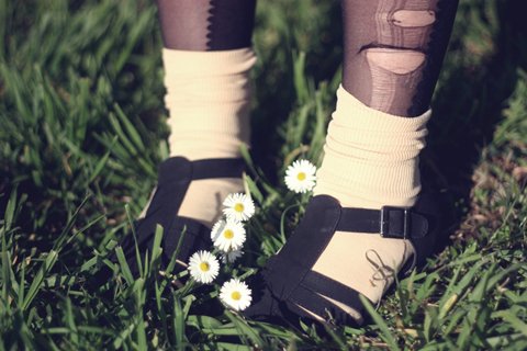 Wearing We Love Colors Nylon Socks Style# 1551 in Maize