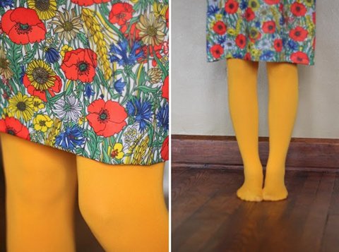 Kaylah of The Dainty Squid Wearing We Love Colors Microfiber Tights in gold
