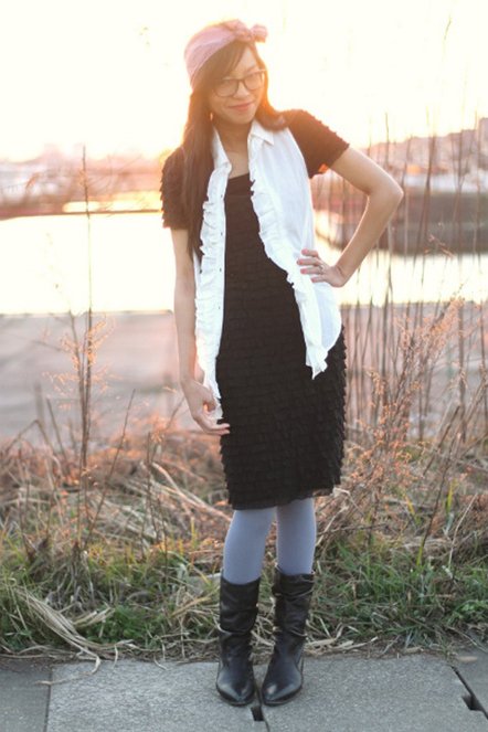 Kristine of Kristine or Polly Wearing We Love Colors Microfiber Tights Style# 1053 in Grey I wore this outfit to go grocery shopping for the first time in Toyama. Grocery shopping in Japan... is really difficult. Until I either learn Japanese or familiarize myself with the packaging of products, I'm going to have no idea what I'm getting.
