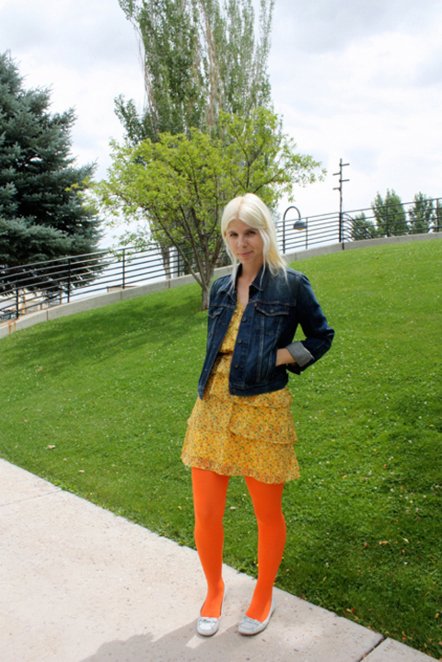 Wearing We Love Colors Microfiber Tights Style# 1053 in Orange