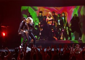 Popstar Rihanna was at the 2012 Grammys in California performing her wonderful hit, "We Found Love" this past weekend. Do you know what was in the background? You guessed it! Backup dancers jamming out in custom We Love Colors black and white tights.