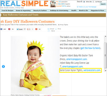 Real Simple is a really fun publication that essentially tries to make everything really simple. This year they posted 16 Easy DIY Halloween Costumes, made from everyday household items. Tights are the perfect accesories for these costumes and they can be found right here at We Love Colors. Remember we have all the colors you need for yourself and your tiny tots!