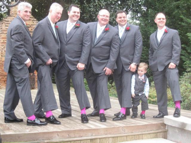 Our Facebook friends Mallory S. posted this awesome picture of the Groomsmen at her wedding. They all have matching We Love Colors tights… even the ring bearer!