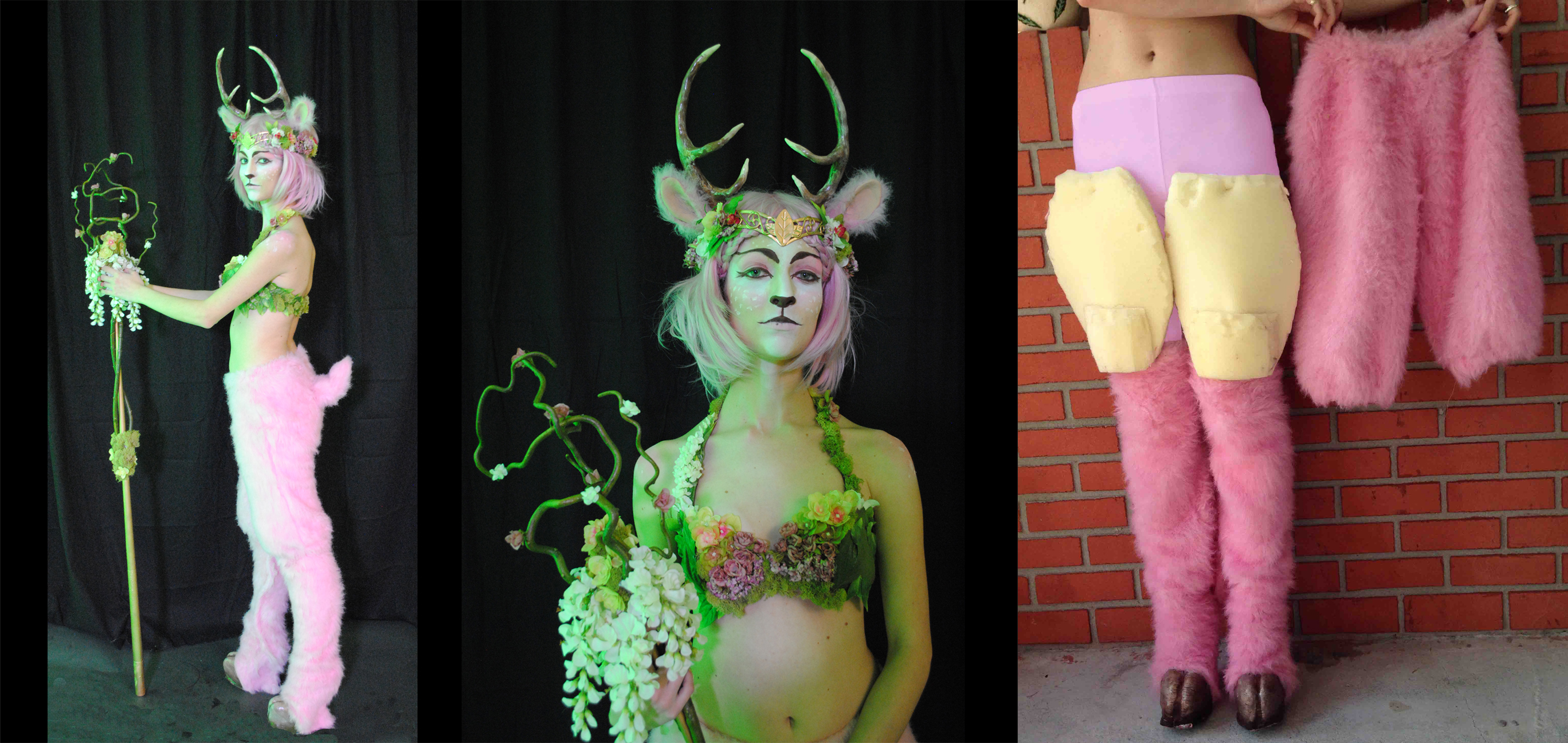 - We Love Colors : Leggings in Orchid pink are worn underneath the fur pants, one to have the color show through and two to not be so itchy! Also a pair of old WLC fishnet tights was modified into a wig cap.