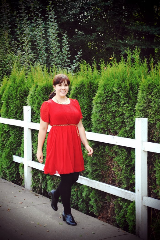 Mount Angel, blogger at Coffee and a Cardigan posted these beautiful pictures of her latest favorite red dress paired up with We Love Colors Black Tights.
