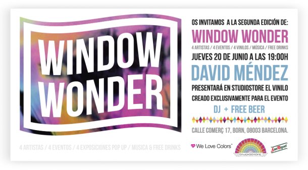 www Window Wonder, a We Love Colors project in collaboration with the concept store Studiostore, keeps moving forward, non stop! This colorful and energetic event took place the past Thursday 20th of June in Barcelona. We celebrated together with the invited artist David Méndez Alonso, second edition of this project. Our creative guest delighted us with a 3 x 2 metros giant sticker on the window of the store, exclusively made for this occasion. wonderwindow_davidIMG_9622IMG_96942IMG_9589IMG_9618IMG_9631IMG_9667IMG_9709IMG_9714IMG_9733IMG_9734IMG_9745IMG_9756IMG_9760IMG_9691IMG_9772IMG_9776IMG_9779IMG_9796IMG_9814IMG_9828IMG_9866IMG_9831IMG_9832IMG_9871IMG_9873IMG_9877IMG_9904IMG_96691IMG_96771IMG_97751IMG_98471IMG_9869IMG_9867IMG_9597IMG_9590IMG_9849IMG_9856IMG_9859IMG_9860IMG_9864