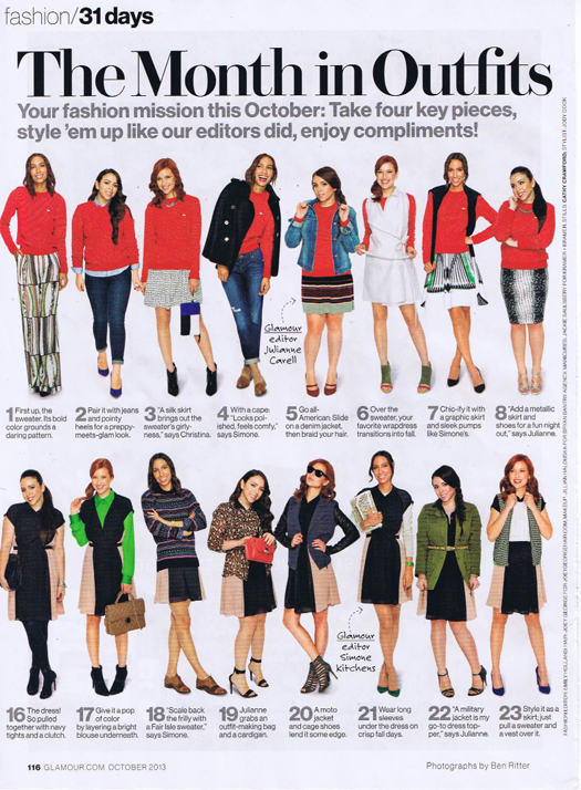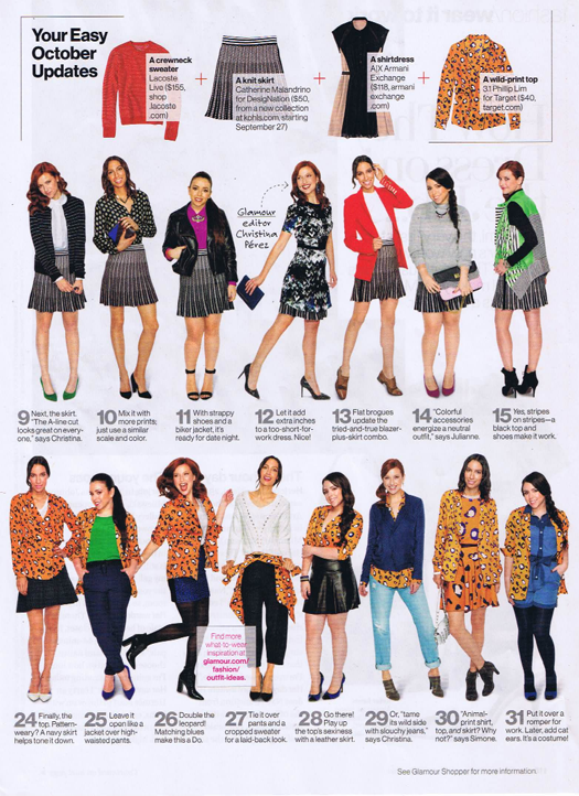Pick up a copy of Glamour's October issue to see how Fashion Editor Emily Holland, Photographer Cathy Crawford, and Stylist Jody Cook used We Love Colors navy and black solid color tights to style the four key pieces in "The Month in Outfits." We Love Colors tights can be used to dress up a shirtdress or add a fun, sexy element to a wild-print top and skirt, and this story is proof.