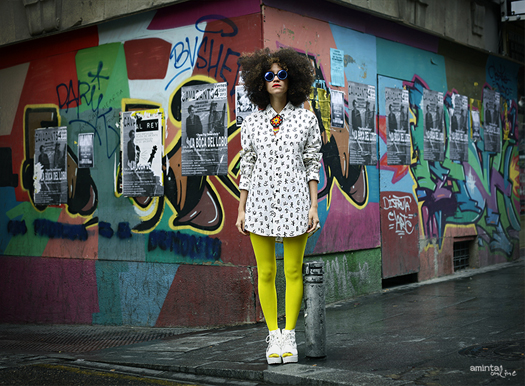 Our friend and blogger Aminta captured some amazing colorful walls while visiting Berlin. Street Art at its best. She is also wearing our Yellow Tights. Street Fashion at its best!