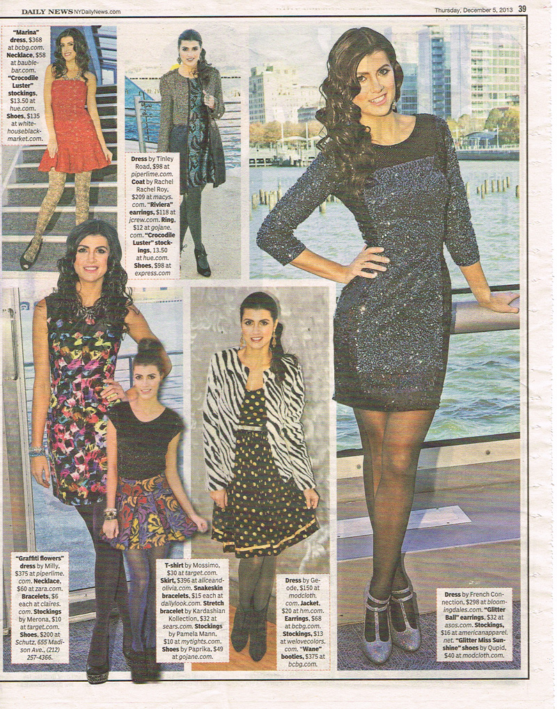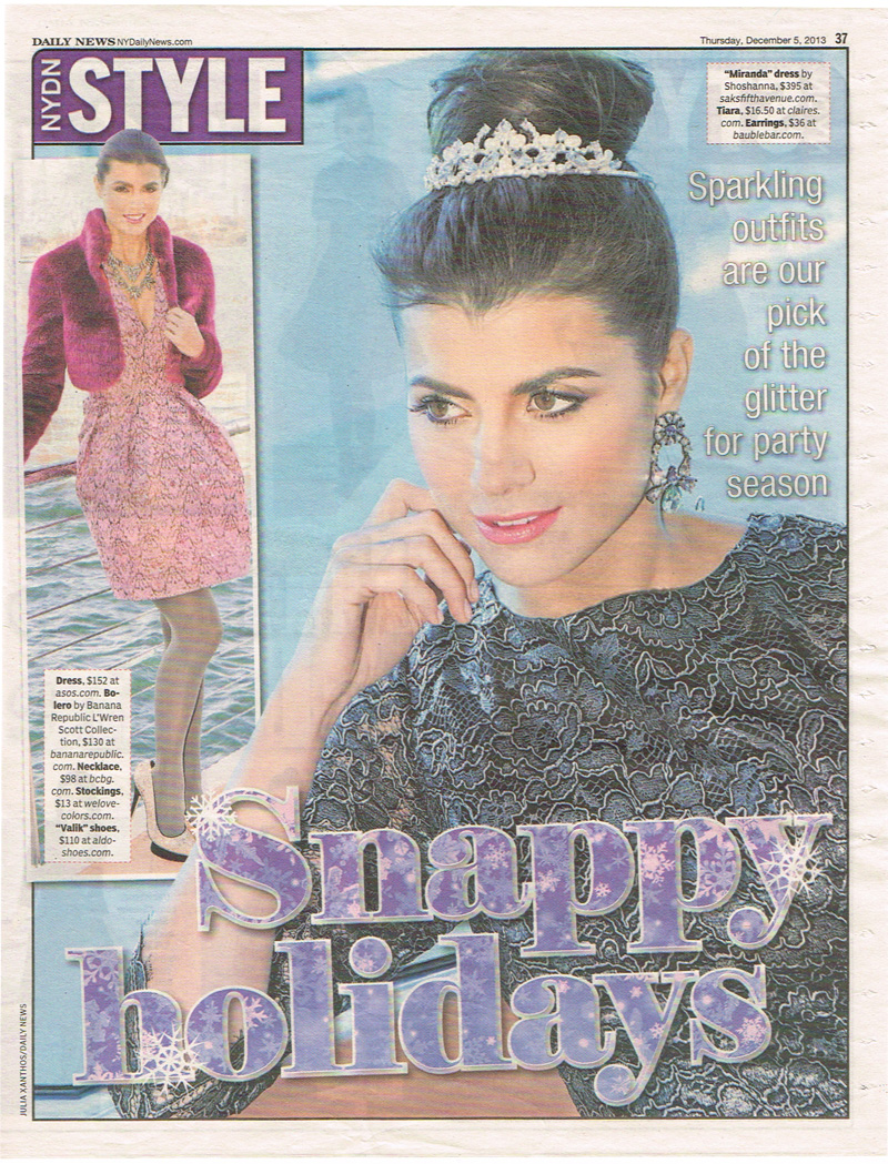 An article entitled "Snappy Holidays: Sparkling Outfits Are Our Pick Of The Glitter For Party Season" in the NY Daily News shows We Love Colors tights are the perfect addition to make outfits that sparkle! This photo by Julia Xanthos featured black tights for this ensemble. What other ways can you sparkle with We Love Colors?