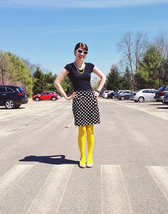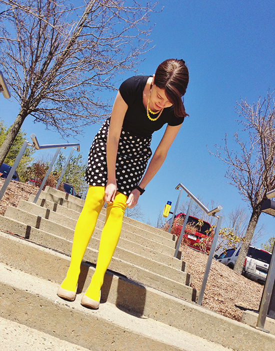 Blogger Sami from Poor and Pretty recently featured We Love Colors solid color tights in a black and yellow ensemble.