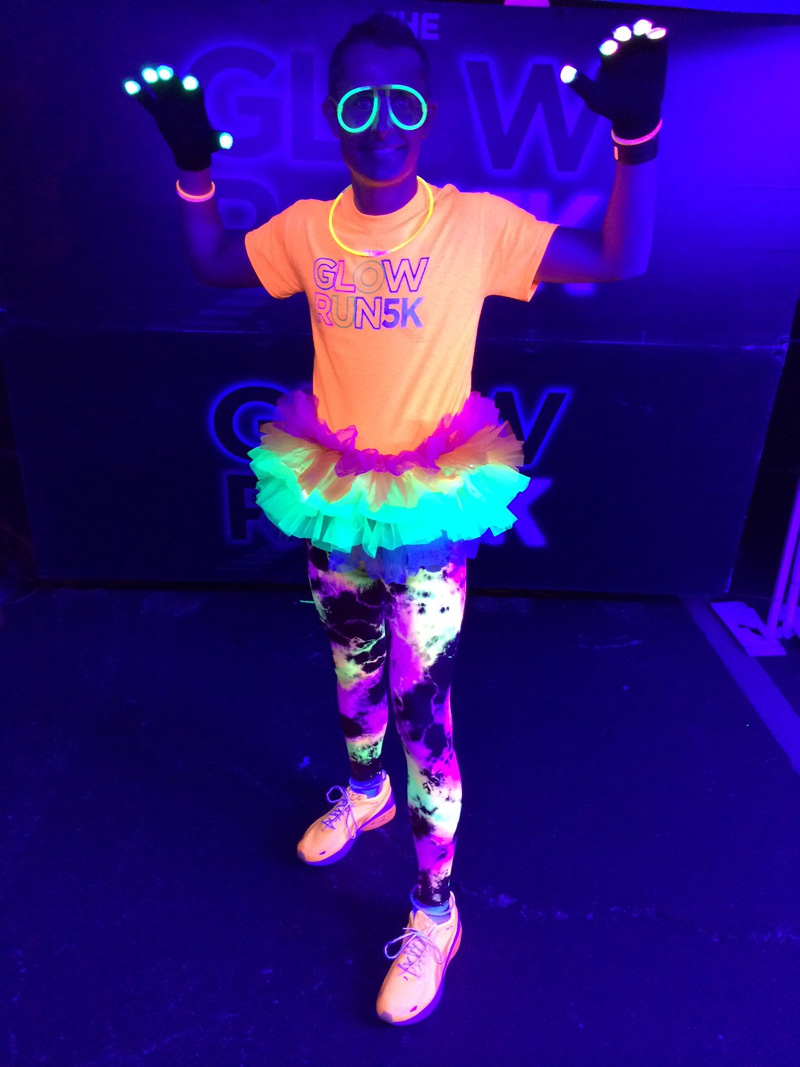 Clint W. sent us this photo of him at the Glow in the dark 5K after party. Kudos to him for showing off his colorful side in our Splash Color tights, and for doing so after running 3.2 miles. How do you celebrate crossing the finish line?