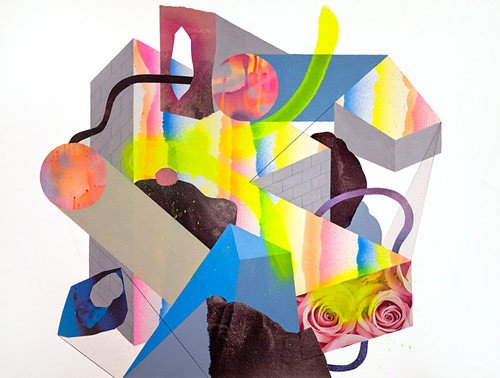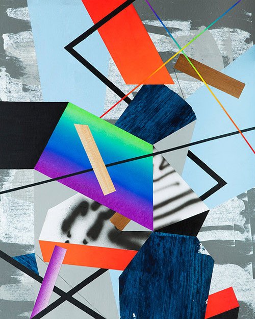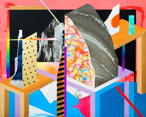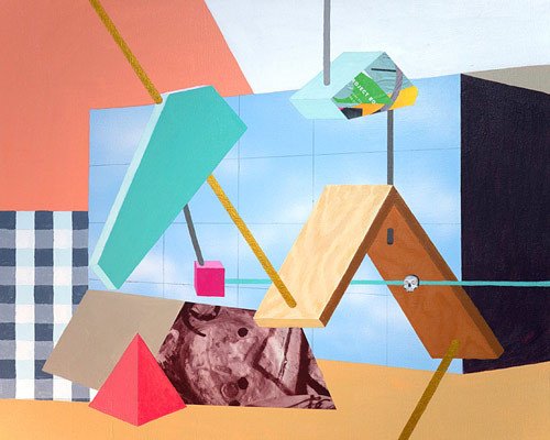 Mixed media paintings by Clark Goolsby, unique language, beautiful compositions, great color concept. We love it!