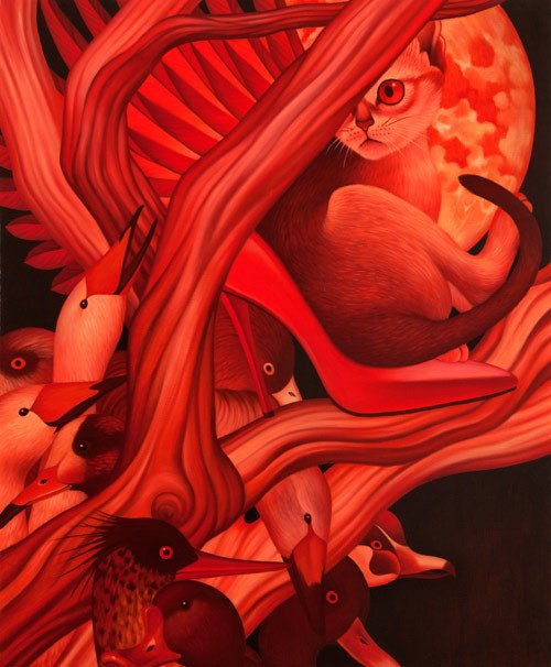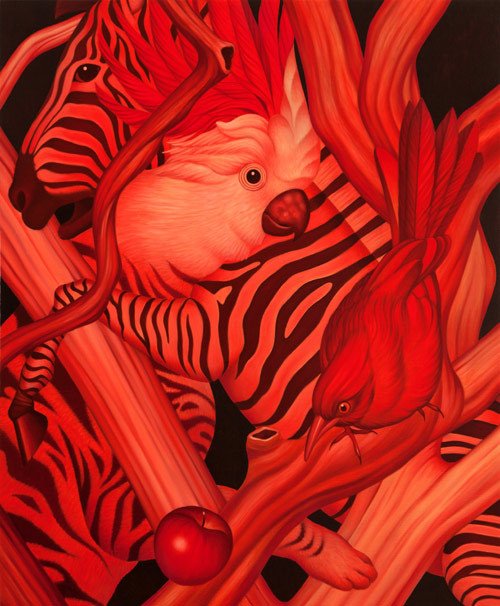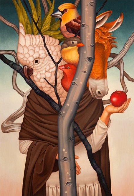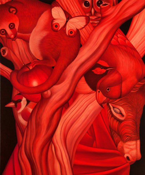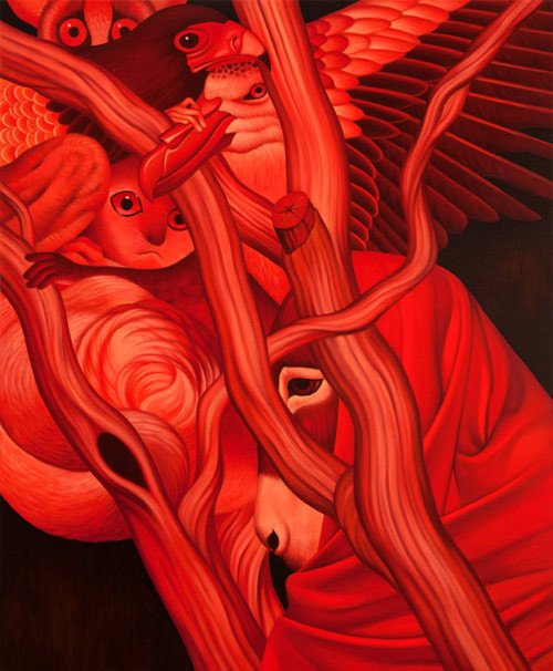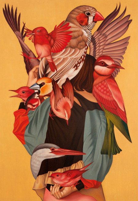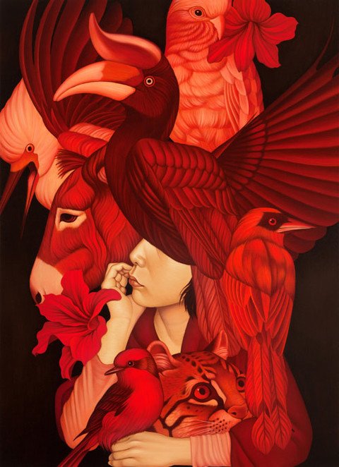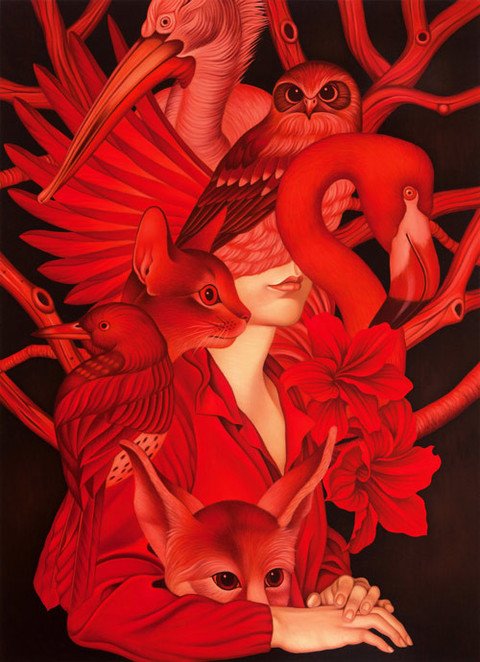 We are glad to present the amazing work painted by the Korean artist Egene Koo. A magic world of intriguing animals mixed with humans and nature, a real explosion of colors.