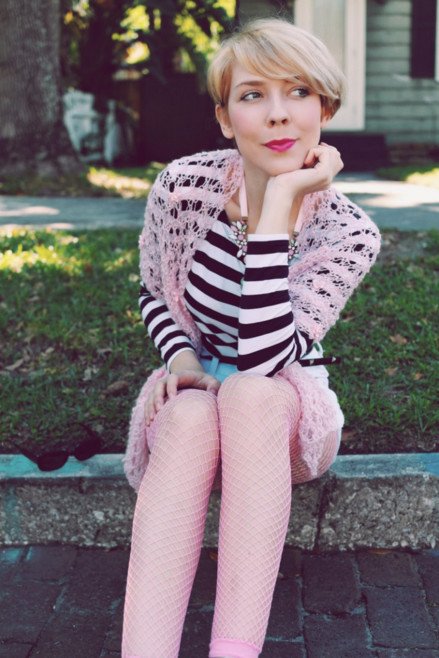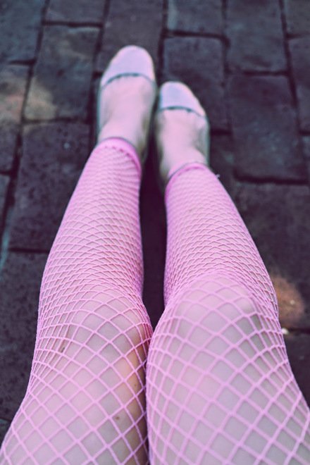 She wears our orchid pink fishnet tights with neutral colors, denim shorts and a striped black and white top ( still long sleeve for those chilly mornings) and yes! we love her heart shaped sunglasses, we think she is the cutest thing on the internet. Thank you for sending us your pictures wearing #WeLoveColors.