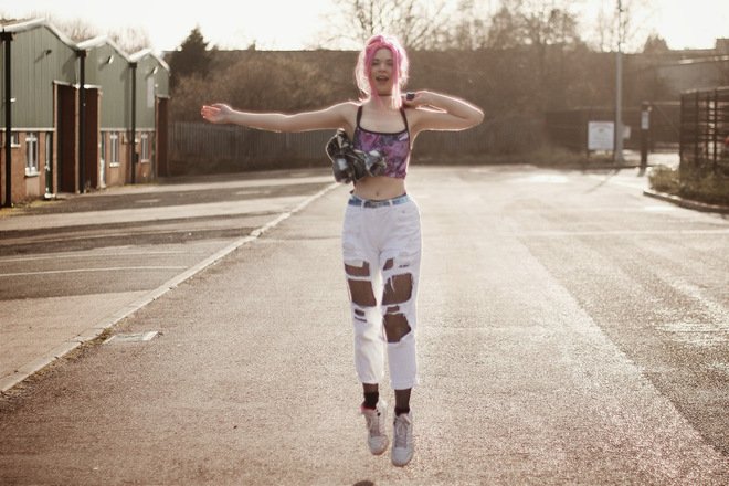 The lovely pink haired UK blogger, Kayla Hadlington surprised us this week with two fun and cool outfits wearing We Love Colors fishnets (Style #1401). On her first look she styled the Lavander fishnet tights with a plaid skirt a crop top and a colorful furry jacket.