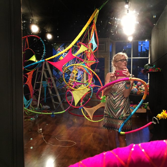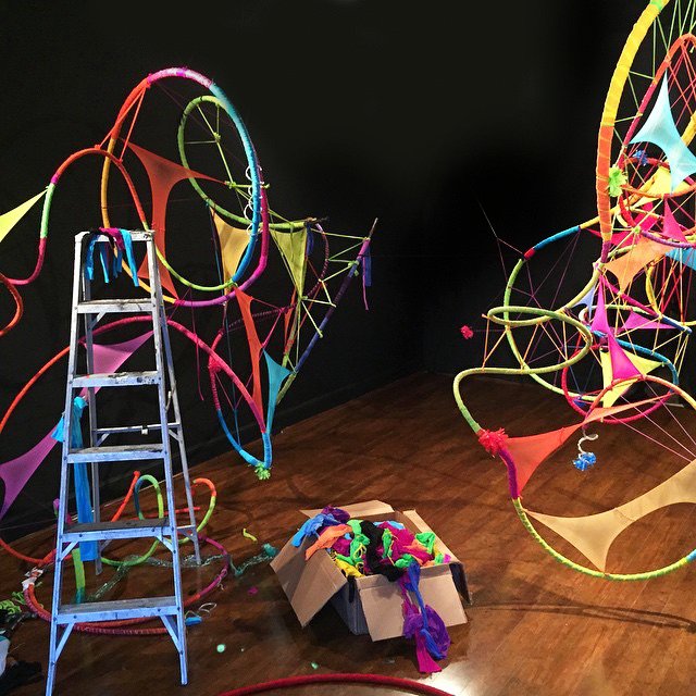 I use simple modern materials like recycled plastic, We Love Colors Nylon tights, metal and vinyl to transform 3-dimensional space into sculptural environments that activate our senses. I believe that serious art does not have to look serious,but can also be fun. My work conveys a spirit of joy that speaks to generations and crosses cultural boundaries. Creating temporary on-site installations is my passion, and working in public spaces allows interaction between the community and myself.