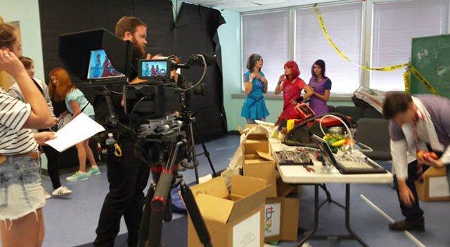 The crew from Team Teenettes, sent us an email with a few images of their film in the making, cool pictures of the main characters wearing We Love Colors tights in lilac, orchid pink and sky blue matching with the rest of their outfits and wigs. Once the movie is out we will make sure to post it here so you can see the final result and the tights in action. By now you can follow their updates at their facebook group.