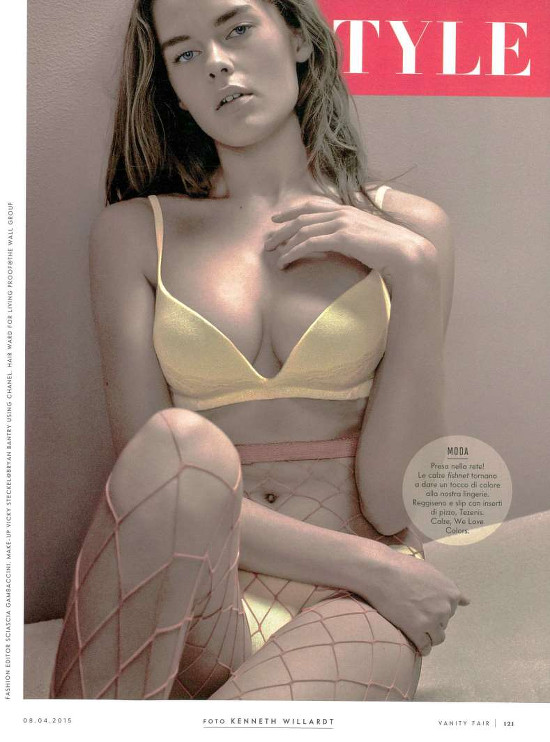 In the April issue of Vanity Fair Italia, photographer Kenneth Willardt captures the gentle essence of lingerie in this editorial titled, “Desideri In Rete.” Alice Manfroni styles the feminine lingerie with We Love ColorsDiamondnet Fishnets in light, pastel colors. Lingerie can be seductive yet delicate with the pairing of soft hued hosiery!