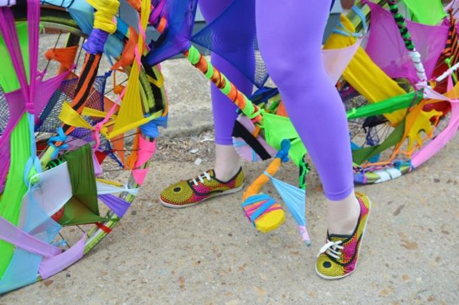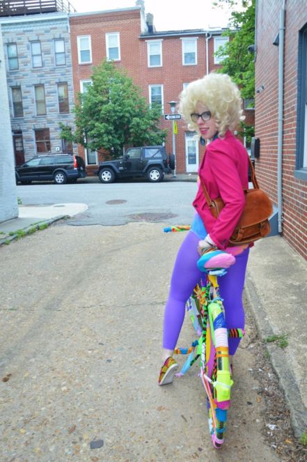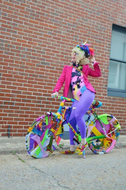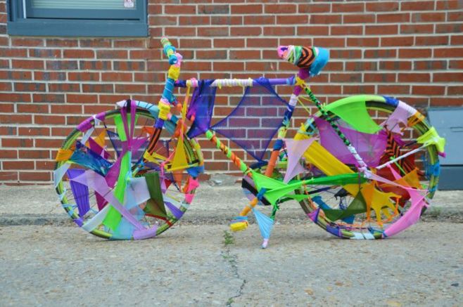 Charlotte is an avid biker, and often rides her bicycle to her job in Baltimore. She loves decorating and bedazzling life, so she decked out her bike using a bunch of We Love Colors tights, shoe laces, and even gloves! How amazing does it look?