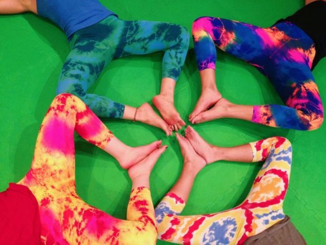 They take yoga adventures to far away places, use music, songs, stories, puppets, games, activities and more to keep kids of all ages engaged and practicing yoga! Kids yoga is often loud, playful, exciting and calming – all at the same time! They even do glow-in-the-dark yoga classes, and lots of our tights shine bright in the black light!