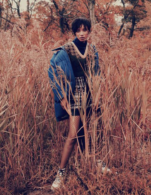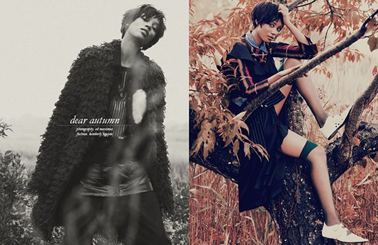 Photographer Ed Maximus beautifully captures the Autumnal spirit of model Nadja Giramata wearing We Love Colors Wide Mesh Fishnets in Black.