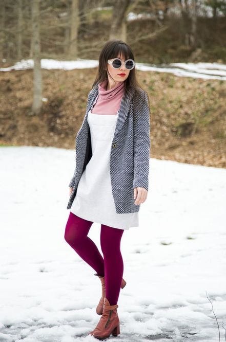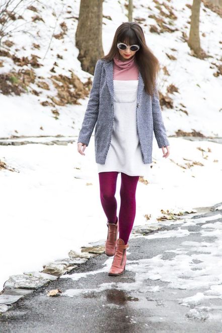 Whitney from LadyWolf says she loves to wear bright colors in the snow at her home in Tennessee because it’s a great way to lift your spirits and remind you that spring is coming eventually! Besides dressing in “bear-attracting colors” like our maroon colored tights.