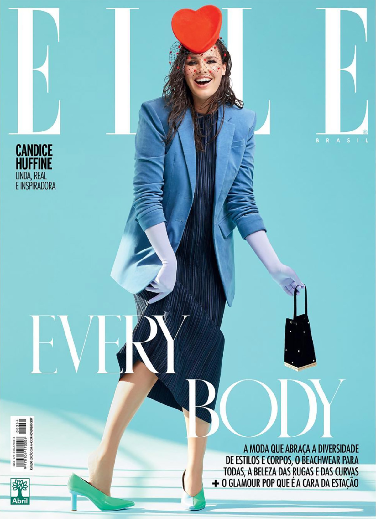 We Love Colors is honored to be on this month’s cover of Elle Brazil. Our Solid Color Shoulder Gloves in Baby Blue and Scarlet Red are modeled by Candice Huffine on both cover versions of the November 2017 edition pictured above. and Scarlet Red