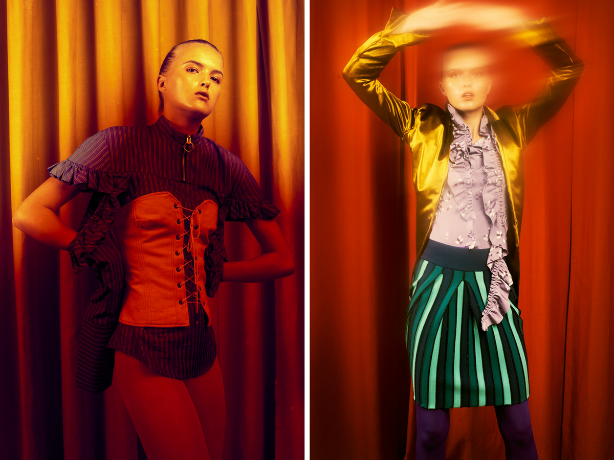 Stylist Renee Huffman used We Love Colors tights to create the vibrant outfits seen in this photo story. Photography by Gina Manning, Makeup by Debra Mackl, and Hair by Jillian Lynch.