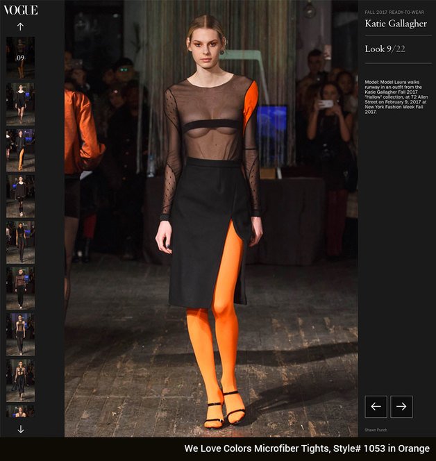 Our Orange tights and Katie's designs have now been featured in several publications including Forbes.com and Vogue.com. Scroll down to see how how the tights were styled to give each outfit its own unique look!