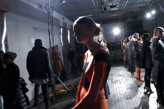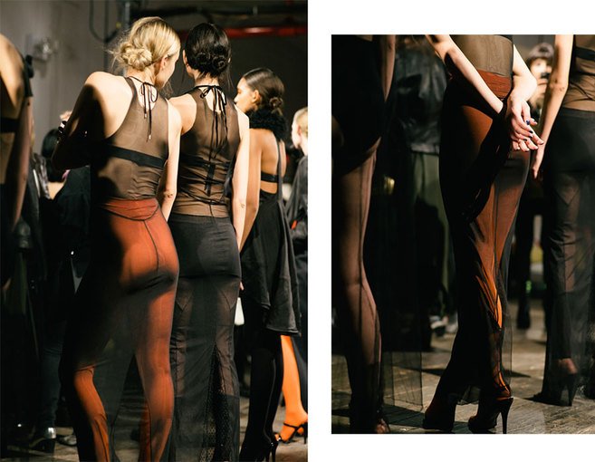 You will also notice that each model has matching orange makeup to accent their outfit.