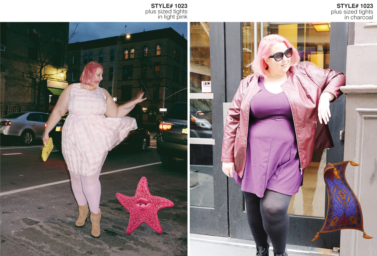 Style# 1023 – Plus Sized Tights in Light Pink, Charcoal, Gold, and White