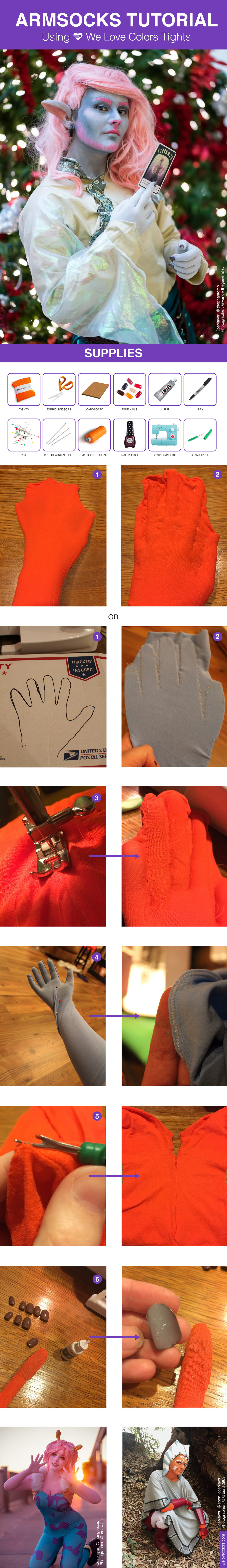And there you have it! An amazing pair of armsocks made with the beautiful colors of We Love Colors tights to match that tricky unnatural skin coloration, without having to paint an arm and a leg.